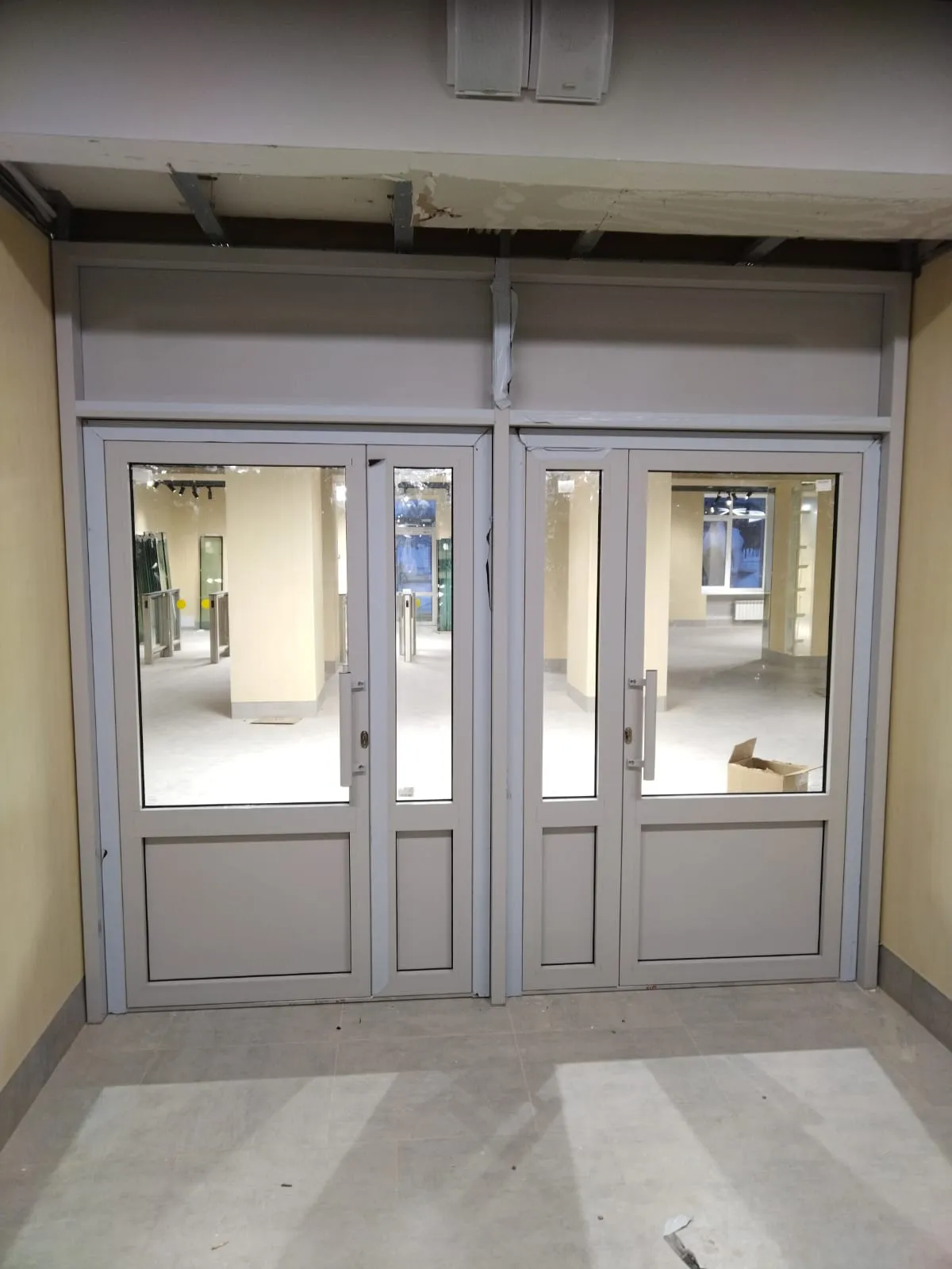Установка алюминиевых противопожарных дверей заводом SK GEFEST